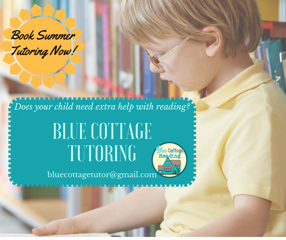 UncategorizedSummer tutoring! April 24, 2019 bluecottagetutor Summer is a great time to focus on reading! I offer several summer tutoring options. Contact me soon to get on my schedule. Share this: Share on X (Opens in new window) X Share on Facebook (Opens in new window) Facebook More Share on Pinterest (Opens in new window) Pinterest Like Loading... Related Published by bluecottagetutor I'm a mom, grandma, and teacher. I've been a reading tutor for over 20 years. View all posts by bluecottagetutor